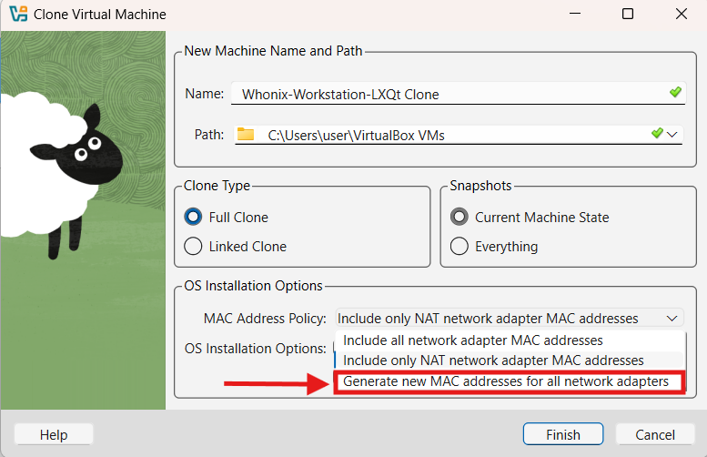 The additional Whonix-Workstation VM should now have a unique MAC address and a unique internal LAN IP address.